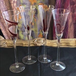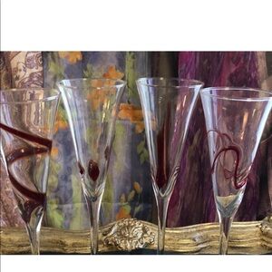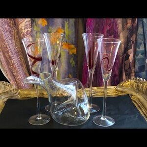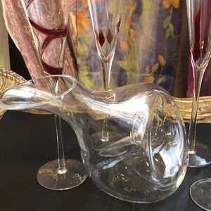 Eisch Decanter + 4 Flutes w/ Red Design Overlay on Flutes