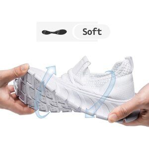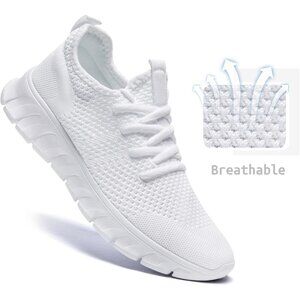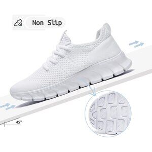 EkRBXA Men White Gym Shoes Non Slip Walking Athletic Slip on Breathable Sneakers