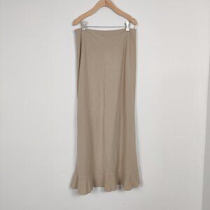 Ekol Women's Maxi Flutter Hem Skirt in Tan Linen Size EU 42 Bodycon