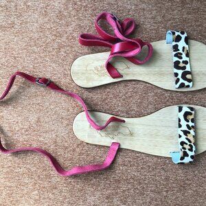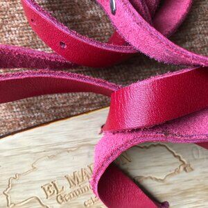 Never go unnoticed by your girl friends with the beautiful fuschia leather skinny straps. This pair will surely be a great conversation piece!