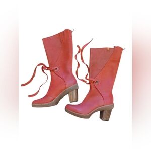 El Naturalista Red Leather Heeled Boots EUC Size36