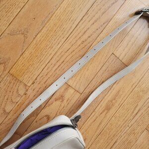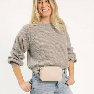 Lightweight high quality and super cute. This vegan leather micro belt bag is the accessory that was missing from your closet! Symbol sophisticated and super versatile. It can be worn as a Crossbody or belt bag thinks it’s adjustable straps available in size small/medium. It comes in a neutral dove pebble color that matches any outfit no matter your style the best part inside you will find ela’s signature purple lining made 100% from recycled plastic bottles.