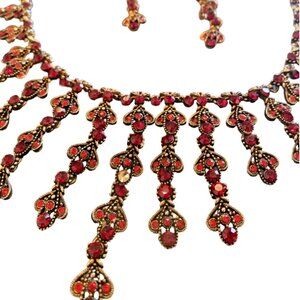 Elaborate Ruby Red Drippy Choker Necklace and Matching Earrings, 16 inches