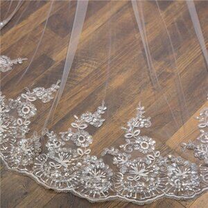 Elaine Cathedral Wedding Veil with Scalloped Floral Embroidery