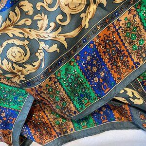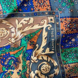 Elaine Gold For Collection XIIX Patterned 100% Silk Scarf