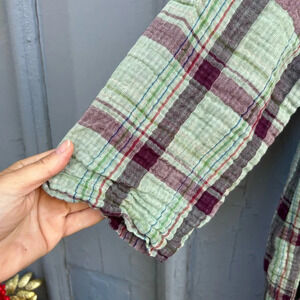 Elan Green Plaid Tunic. Can be worn as a dress (dependent on your height) or with jeans/ leggings for a perfect transitional option. Pockets, v neck, interior is lined with contrast black and white checked print.