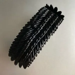 Black plastic bracelet. Stretchy elastic. Lightweight. Kind of looks like flower petals. Excellent like new condition.