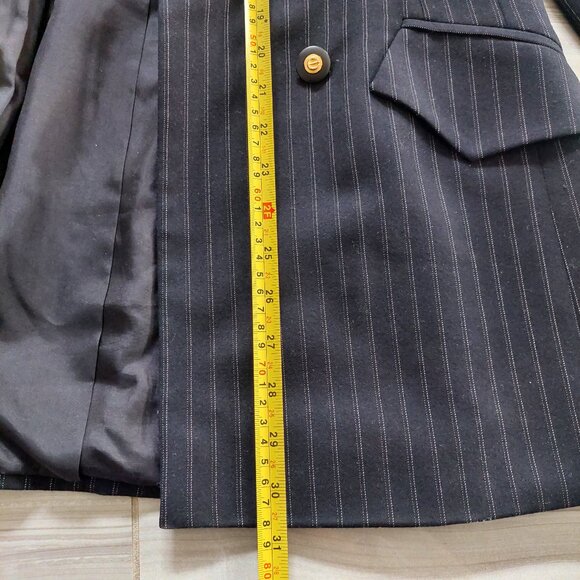 Electre Paris France Double Breasted Black Pinstripe Wool Blazer, Size M-10/EU40