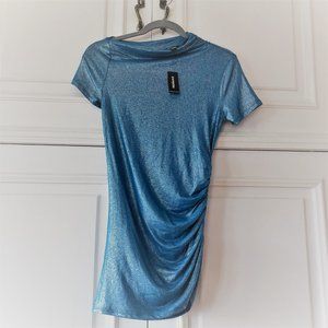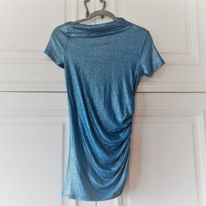 Electric "Mykonos Blue" Asymmetrical Ruched Tunic Top XS *BRAND NEW*