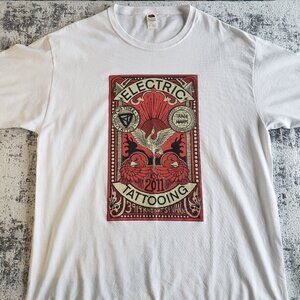 Electric Tattooing White Graphic Tattoo Tshirt Crane Bird Japanese style