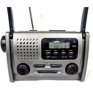 This Electrohome Hand Crank Emergency Radio Alarm Clock Flashlight Blink PCR138E is pre-owned / tested and in GOOD condition. The item in the pictures is the EXACT one you are buying. Please look at all pictures and ask any questions you have before placing an order. Does not include charger.