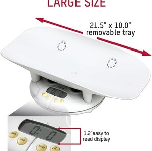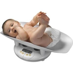 Comfortable, securely fitted weighing tray safely keeps baby in place