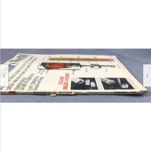 Paper magazine cover has tattered edges, bends, scuffs, tears to back cover and spine, possibly a few missing/cut pages, yellowed paper due to time.