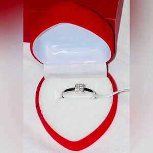 Elegant 14k White Gold Women Ring with Square Diamond Accent Gift With Purchase