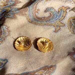 🍂 Elegant 90s Vintage Chunky Gold Shell Earrings Details •Lightweight Fabric •Gold-tone metal. Size 📏 Flat measurements: • Length: 0.8" • Width: 0.8" Condition •Excellent vintage condition with minimal signs of wear. Tags : Retro Elegant Studs Classic Minimalist Timeless Chic Retro Statement Preppy Cute - Ships from Montréal. Open to offers and bundles.