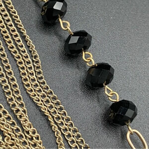 Elegant Antique Gold Jet Black Glass Beaded 6-strand Layering Necklace 16”