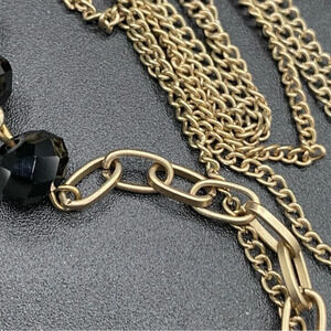 Multistrand layering necklace in antiqued gold tone with stationary black glass beads