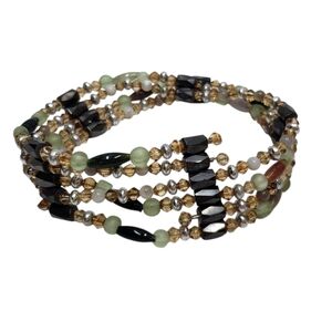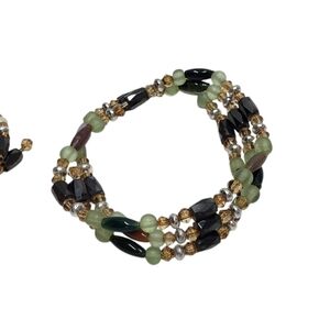 Elegant Beaded Bracelet Set Magnetic Black, Green, Gold Multicolour