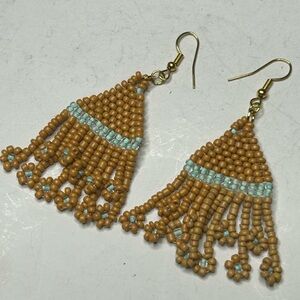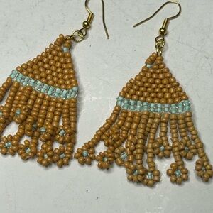 Elevate your style with these elegant beaded fringe earrings. The gold and blue beads create a captivating look, perfect for any occasion.