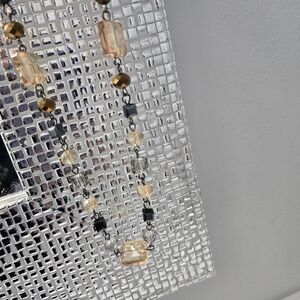 This elegant beaded necklace features stunning gold and black accents, perfect for adding a touch of sophistication to any outfit.