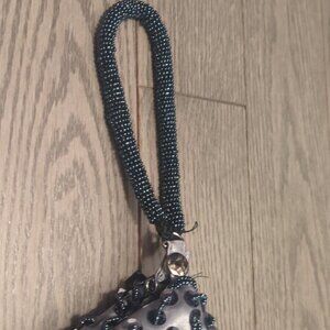 This elegant beaded wristlet clutch is perfect for a night out. Featuring intricate beadwork in stunning purple and black, it adds a touch of sophistication to any outfit.