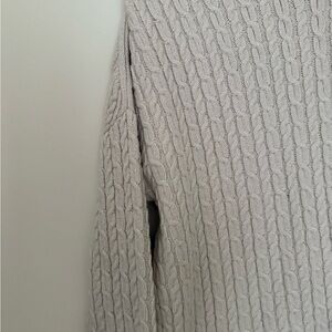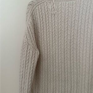 Embrace elegance with this chic beige cable knit sweater. Ideal for layering and adding a touch of sophistication to your wardrobe.