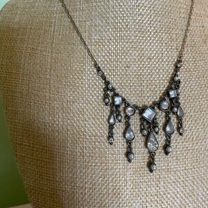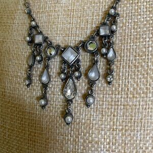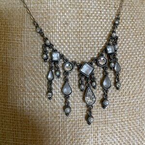 This elegant silver necklace features stunning crystal accents, perfect for adding a touch of sophistication to any outfit.