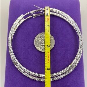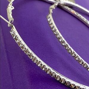 💛 Elegant Big Silver Crystal Hoop Earrings