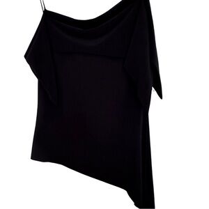 This chic black camisole features an elegant asymmetrical design, perfect for a night out or a stylish day look. Its sleek silhouette offers a flattering fit.
