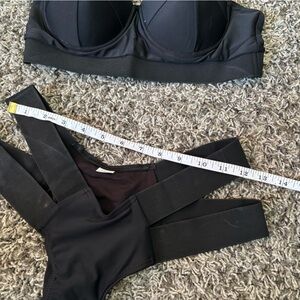 Stylish black bikini with unique strap design. Perfect for beach or pool.