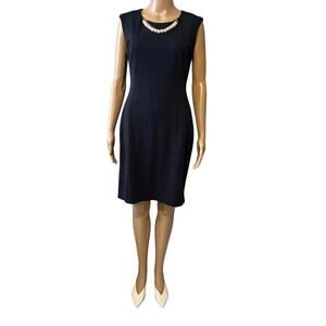 Discover timeless elegance with this stunning black dress designed for the modern woman. Featuring a sleek silhouette and sleeveless design, this dress is perfect for both formal occasions and casual outings. The tasteful pearl accents at the neckline add a touch of sophistication, making it a versatile addition to your wardrobe.