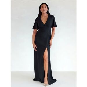 This elegant black evening gown is perfect for any formal occasion. Its sleek design and sophisticated style make it a must-have in your wardrobe.
