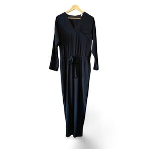 Chic black jumpsuit with a tie waist. Perfect for any occasion.