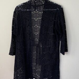 Elevate your wardrobe with this elegant black lace cardigan. Perfect for layering, it combines style and comfort effortlessly.