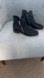 Elevate your wardrobe with these chic black leather ankle booties. Designed for comfort and style, they feature a sleek zipper for easy wear. Perfect for any occasion. EXCELLENT CONDITION