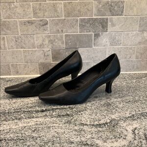 Step out in style with these elegant black heels. Perfect for any occasion, these shoes offer both comfort and sophistication. Heel is about 2 1/2” tall. Leather upper. Size 7M. Worn once but due to health issues I’m no longer able to wear heels. Check out my other listings and bundle to save. Questions? Leave in comments below. I’m open to offers.