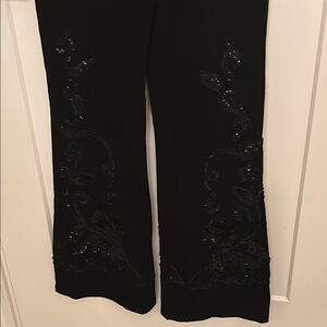 Chic unique black pants with intricate sequin embellishments. Ideal for elevating your style. Very sexy and flattering on. Stretchy and comfortable, worn once.