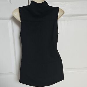 This elegant black sleeveless top is perfect for any occasion. Its sleek design offers a sophisticated look.