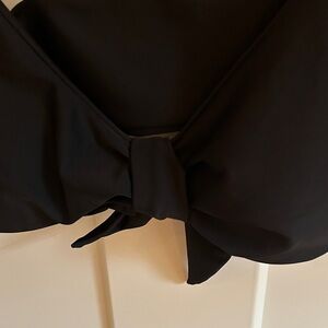 Discover elegance with this stylish black tie-front bikini top & high-waist bottom.