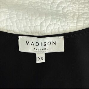 This elegant black mini dress features a flattering V-neck and a stylish tiered skirt. Perfect for any occasion.