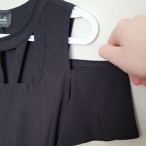 This chic black summer top is a must-have for any wardrobe! Its sleek and lightweight design makes it perfect for warm weather, whether you're dressing up for a night out or keeping it casual. The top is well-loved and has some minor stains on the inside of the right underarm, but they aren’t very noticeable. No stain removers have been used yet, so they can be treated. Grab this stylish and versatile piece at a great price!