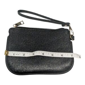 This stylish black wristlet clutch is perfect for any occasion. Its sleek design and versatile color make it a must-have accessory. Pictures are part of the description. Please review the photos.