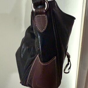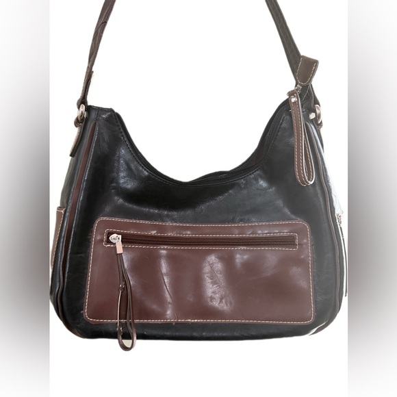 This stylish women's bag features a sophisticated black and brown design, perfect for any occasion. Its elegant look is both versatile and chic.