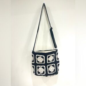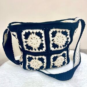 Crochet new Stylish and versatile crossbody bag in black and cream. Perfect for any occasion.