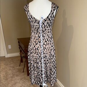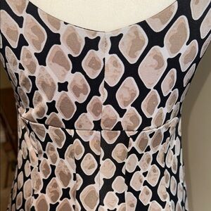 This elegant dress features a stylish black and cream pattern, perfect for any occasion. Its sophisticated design offers a flattering fit, making it a must-have addition to your wardrobe.