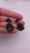 These stunning black faceted acrylic and goldtone floral earrings add a touch of elegance to any outfit. Perfect for any occasion.