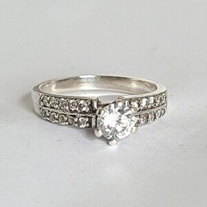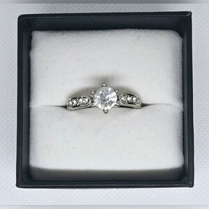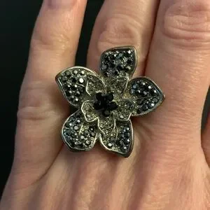 Elegant Black and Silver Floral Ring, Costume Jewelry, Adjustable
