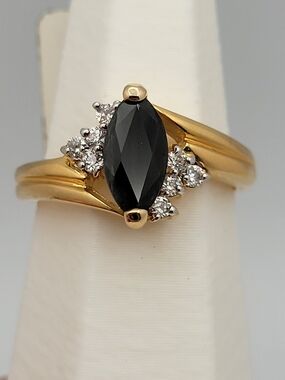 This stunning floral ring features a captivating black and silver design, perfect for adding a touch of elegance to any outfit.