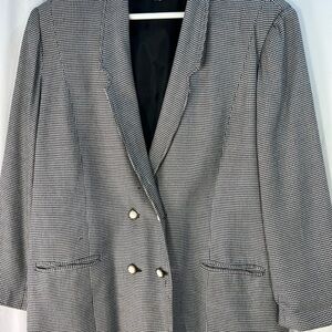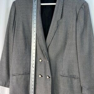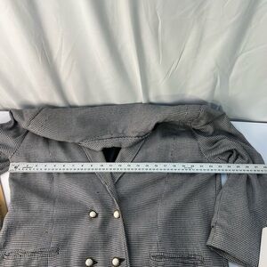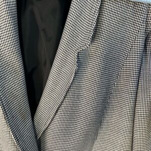 Elevate your classic wardrobe with this timeless vintage Juliette’s women’s blazer. Crafted in Canada, this elegant black and white houndstooth jacket features: