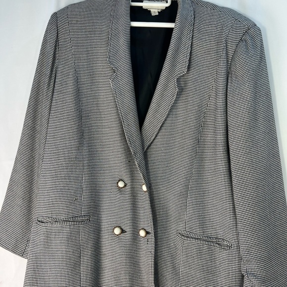 Elevate your classic wardrobe with this timeless vintage Juliette’s women’s blazer. Crafted in Canada, this elegant black and white houndstooth jacket features:
